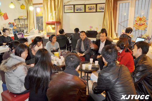 接下来调研活动团干教师座谈和学生干部座谈分别展开。团干教师座谈中来自交大的校院两级团委书记与我院院系两级团委、团工委老师进行了对接交流。交大校团委书记徐永胜老师系统化地介绍了交大共青团在新的百年发展中团工作的定位和思路。我院团委书记程璟老师介绍了对独立学院共青团工作的认识和思考,谈到加强与母体高校团工作的学习交流,传承母体高校团的优良传统和经验,将是新时期独立学院共青团发展与校园文化创新下的重要建设目标。两校团委书记表示会继续保持和加强共青团友谊,在日常工作中不断交流,共同进步。