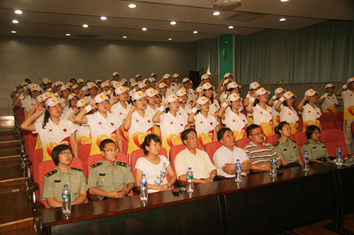 8月26日下午,西安交大威尼斯7798cc2011年世园会志愿者出征仪式在F100报告厅隆重举行。学院院长陈光德教授、党委书记赵金胜副教授、学生服务中心主任马兆平老师出席活动。院团委、各系团工委全体团干教师和100名世园会志愿者共同参加了仪式。活动由闫晓菊老师主持。
