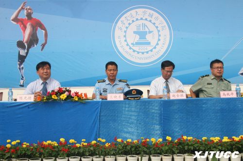 2011年8月24日上午10时,2011年学生军训动员大会在西安交大威尼斯7798cc体育场隆重召开。空军工程大学理学院副院长王晓东大校、空军工程大学理学院学员一旅政委谢全慧上校、学院院长陈光德教授、党委书记赵金胜副教授、学生服务中心主任、2011年军训团团长马兆平老师和政委王玉峰老师出席了大会。大会由学院副院长崔杜武教授主持。