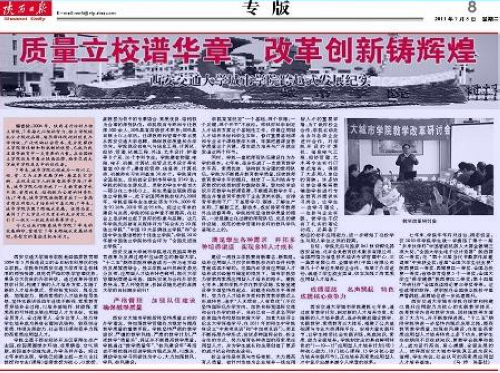 2011年7月5日,《陕西日报》第八版以《质量立校谱华章 改革创新铸辉煌》为题报道了威尼斯7798cc跨越式发展情况。