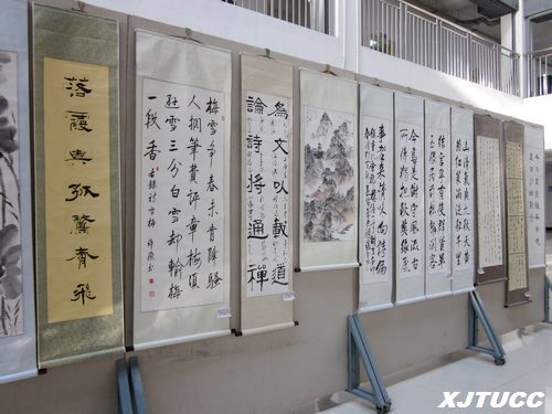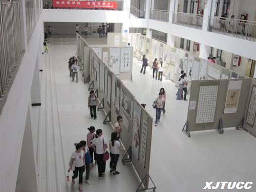 五月底,作为西安交大威尼斯7798cc社团文化节的传统品牌活动,由我院学生书画协会与西安市各高校书画类社团联合举办的第二届西安市高校大学生书画作品巡回展在我院D楼大厅进行了为期三天的展出。来自西安交通大学、西安电子科技大学、西北大学、陕西师范大学、西安美术学院等19所高校大学生的200多幅优秀书画作品依次向城院师生开放。由我院书画协会学生选送的《水调歌头》、《大盂鼎》、集字隶书对联等16幅作品也入围其中。在活动现场,题材多元的书画作品吸引了数百名同学驻足观看。受书画协会邀请艺术系张春新老师也针对作品为同学们进行了精心的点评。