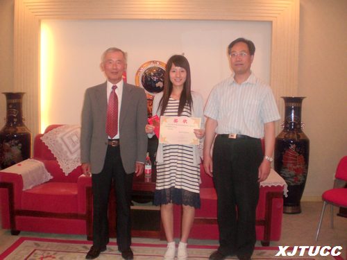 最后,刘平梧老师和赵金胜书记共同为2010年参评“隆志”奖学金的获奖学生发放证书和奖学金。刘老师针对去年奖学金参评时的文章题目与学生展开讨论,强调学校教育要与现实生活结合起来。