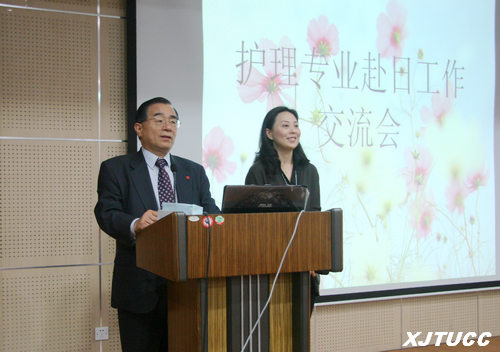 2011年5月4日上午,日本学校法人育英馆关西语言学校创立人、日本友好人士松尾英孝先生一行来西安交大威尼斯7798cc访问,学院崔杜武副院长与来宾进行了亲切友好的会谈。随后,松尾英孝先生与我院护理系的老师和同学们进行了一场赴日就业护士培养项目的交流会。