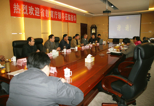 院长陈光德教授首先向教育厅专家组做工作报告,具体介绍了学院发展与办学条件、学校组织与活动、招生工作与行为、学校资产与财务管理、和谐校园建设和安全稳定工作等方面的情况,强调我院会继续坚持培养高素质应用型人才的办学理念,加强实践教学,创新培养模式,为陕西省乃至全国教育事业的发展做出应有的贡献。