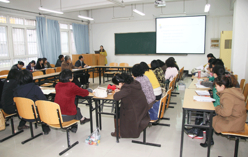 在论坛活动中,王晶老师汇报了“2010年全国高等学校英语教师教育与发展研讨会”的主要内容,重点介绍了英语写作的教学目标、教学理念与原则、教学过程中各个环节的授课方法以及教学模式等内容,并从如何帮助教师更有效地组织写作教学活动、提高作文评阅效果、进行写作教学研究等方面做了进一步的阐述。