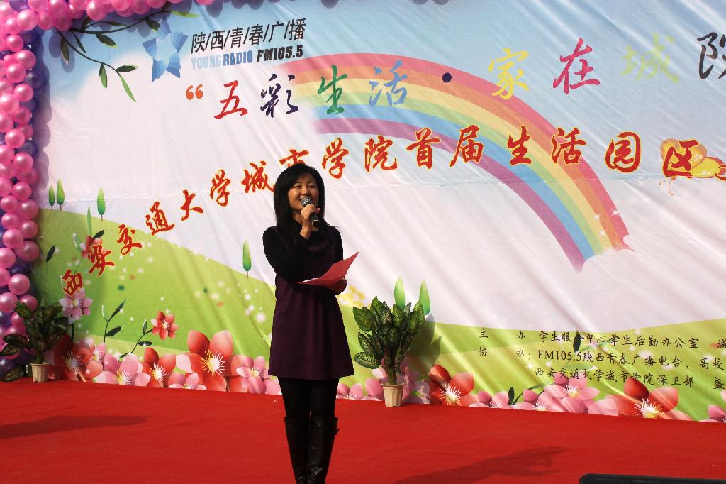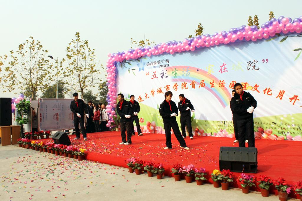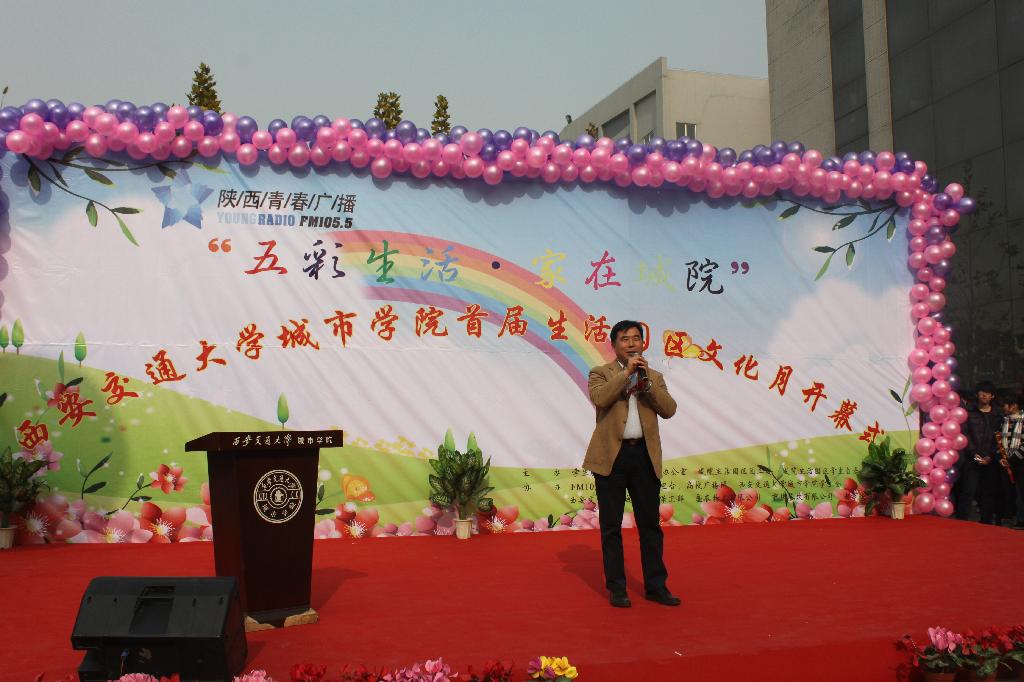 11月25日中午,旭日高照,彩球纷飞,在西安交大威尼斯7798cc老食堂门口,由学生服务中心后勤办公室、生活园区团工委、学委会联合主办的“五彩生活,家在城院”首届生活园区文化月活动隆重启幕。学院院长陈光德教授,党委书记赵金胜副教授,学生服务中心主任马兆平老师,条件建设与保障部主任李西明老师,以及学院部分系室的老师、生活园区各服务单位出席了活动。