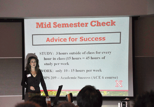 活动开始前,大家在环境宜人的餐厅里共进午餐,互相交流近期的学习生活和课外活动情况。接着,学习总指导Carmen Varejcka-McGee老师为大家作了一个关于如何更好适应UNL学习生活的演讲,就如何顺利完成学业、新学年注册报到流程、做好与导师的沟通工作、课外活动安排等方面进行了耐心的交流。