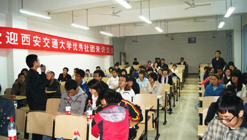 会上,团委王蜜蜜老师首先简要介绍了我院学生社团的发展概况,希望此次活动能为两校学生社团的学习合作打下坚实的基础。来自交大IBM学生技术俱乐部、沈杨书社、武术协会、英语调频台等优秀社团的负责人分别就社团的历史背景、发展现状、社团文化等方面分享了社团管理的成功经验。其中交大的沈杨书社曾获“全国百强社团”,社长周成材同学一席精彩的发言让在场的社团同学受益匪浅。