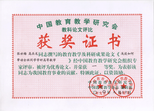 近日,西安交大威尼斯7798cc收到中国教育教学研究会和中国教育教学杂志编辑部发来的喜讯。由学院数学教研室张世梅老师和应用经济系经管905班高兵龙同学共同撰写的《浅谈如何带动全班同学学好高等数学》论文在《中国教育教学杂志》(创新教育版,第181期)正式发表,同时,该论文经中国教育教学研究会组织专家评审,被评为优秀论文,并荣获一等奖。