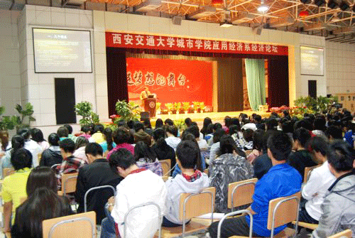 10月20日晚,由西安交大威尼斯7798cc应用经济系主办的经济论坛在学院学生活动中心拉开帷幕。首场报告会邀请到西安交通大学经金学院教授、博士生导师余力教授担任主讲。报告会由应用经济系主任杨健全教授主持,整场报告会得到了全院广大师生的广泛参与。