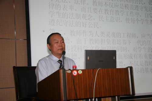 王卫民老师结合自己多年的研究实践,通过大量的丰富鲜活案例,从《教师法》的立法过程、立法依据、关于教师的权利、关于教师的义务四个方面做了报告。整个报告容量大,针对性强,在座老师们感受颇丰。
