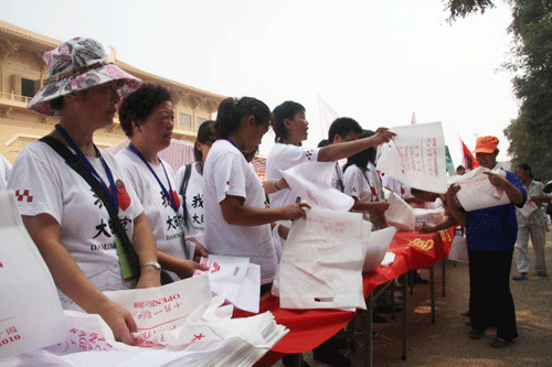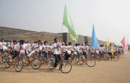 9月11日,来自西安交大威尼斯7798cc的50多名志愿者换上统一的印有“我爱大明宫”的T恤后,共同秉承着“千年历史,传承由我”的口号。在大明宫保护办主任、大明宫基金会周冰秘书长的带领下进入正在建设的大明宫遗址园区参观,进行园区公益清扫,并聆听陕西师范大学杜文玉教授为志愿者讲述的大明宫历史。18日,我院50名多志愿者参加了主题为“千年低碳,传承你我,低碳生活,示范西安――百名志愿者骑自行车环游大明宫”的活动。整个行程由大明宫的玄武门骑车至丹凤门,并向过往市民发放环保购物袋,宣传低碳生活方式,并在宣传条幅上签字。26日,我院的120名志愿者,参加了大明宫基金会、华远西安公司联合主办的“万鳞归泽、福佑中华”大明宫太液池锦鲤放生活动。在活动中,我院学生认真负责,给来参加活动的业主发放礼品,引导业主前往太液池,并维持现场秩序,受到大明宫基金会的赞扬。活动结束后,城院学生亲手放生100多条鲤鱼,为祖国祈福。