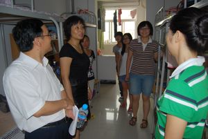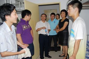 9月3日晚6时,系主任杨健全老师、副主任史冬梅老师与系学生工作办公室老师一道,走进新生宿舍,亲切慰问了来自祖国各地的新同学。在宿舍里,各位老师与新生们热情交谈,细心体察新生中的情况,耐心地替学生答疑解惑,受到了新生的热烈欢迎。