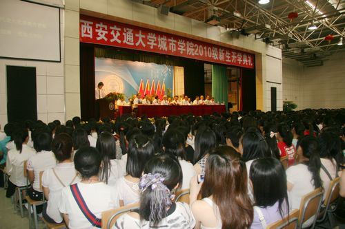 9月3日上午9点,学院在学生活动中心隆重召开2010级新生开学典礼。西安交通大学党委副书记王小力教授,西安交通大学国家级教学名师、博士生导师马知恩教授,西安经发集团副总经理、学院董事韩东升先生,西安交通大学社会教育管理处处长、学院董事冯晓光教授,美国内布拉斯加林肯大学校长助理David Wilson教授,加拿大纽芬兰纪念大学商学院院长助理兼国际事务部主任Michael Burns教授;学院院长陈光德教授,党委书记赵金胜副教授,副院长崔杜武教授,副院长张敬朝高级工程师,李加玉总会计师,工会主席王海民教授出席大会。同时在主席台就座的还有学院各系(室)、中心(部)主要负责人。