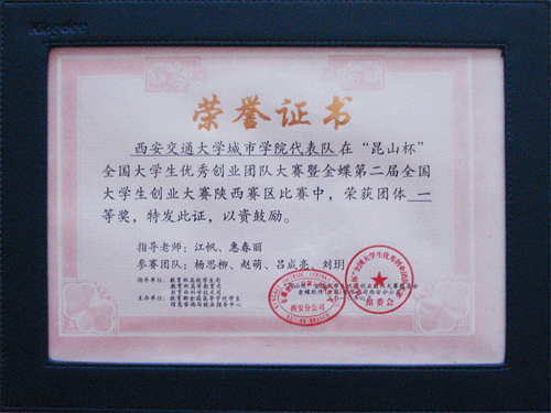 最终,通过师生的共同努力,我院国贸702班吕成亮、金融706班杨思柳、刘�、会计706班赵萌四位同学组成的代表队获得陕西赛区一等奖。同时,江帆老师、惠春丽老师获优秀指导老师称号。