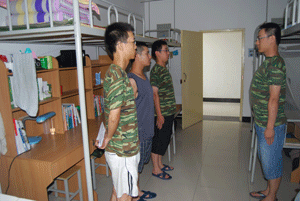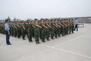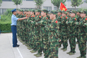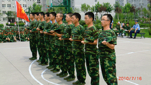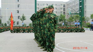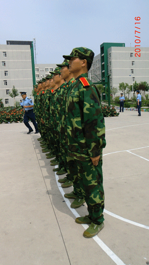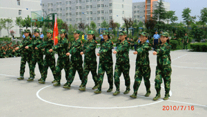 学院自7月11日组织2009级学生军训以来,全体官兵每天刻苦训练,他们坚毅的步伐、嘹亮的口号和优美的歌声,形成了校园里一道道美丽的风景线。