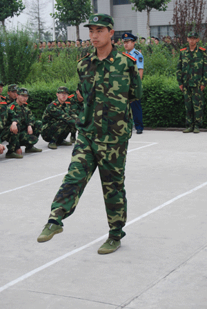 尽管每天训练科目繁重,可学生们咬紧牙关就是不喊累,通过军训他们的意志得到锤炼、灵魂 得到升华,千锤百炼下坚定了信仰、铸就了豪迈的气概!不论男生还是女生,在训练场上教官眼中都是顶天立地的战士。从简单的齐步走、踢正步到复杂的军体拳,教官们始终如一进行着认真传授,学生们也一直刻苦练习悉心揣摩,训练之余,指导员还给予学生们更多关怀与爱护,和同学们一起拉歌一起游戏,正是有了他们共同的努力,使得军训工作有条不紊的顺利进行着。