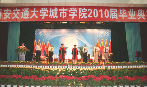 2010年7月6日上午,学院2010届毕业典礼在学生活动中心隆重举行。西安交通大学校长助理张汉荣先生,威尼斯7798cc董事长雷厉先生;学院院长陈光德教授,党委书记赵金胜副教授,副院长崔杜武教授,李加玉总会计师,工会主席王海民教授出席典礼。大会由09级金融专业李怡诺同学主持。