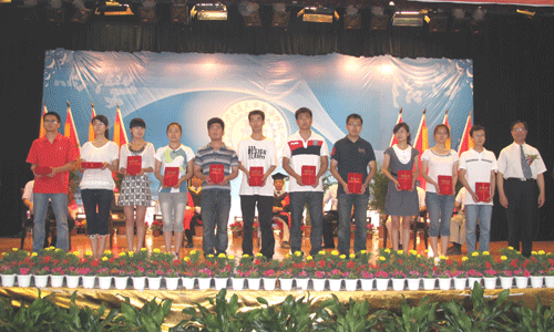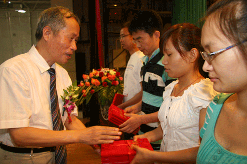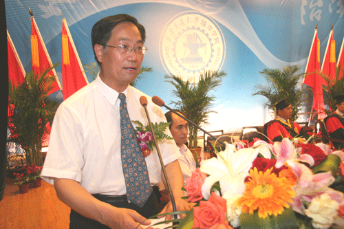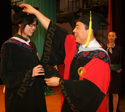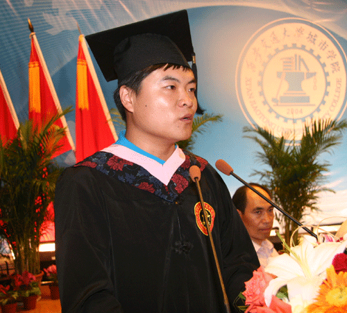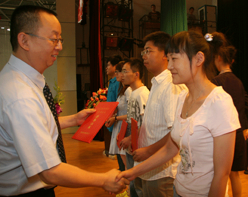 接着由学院党委书记赵金胜副教授宣读省级、院级优秀毕业生表彰决定优秀毕业生表彰决定,以及毕业生自主创业、参加西部计划、预征入伍毕业生的决定。并由赵金胜书记为获得2010年省级优秀毕业生和优秀学生干部颁奖;威尼斯7798cc董事长雷厉先生为院级优秀学生干部颁奖;由学院副院长崔杜武教授为院级优秀毕业生颁奖。随后,院长陈光德教授宣布学位授予决定,并与西安交通大学校长助理张汉荣副教授庄严地为2010届毕业生颁发学历和学位证书,将毕业典礼推至高潮。