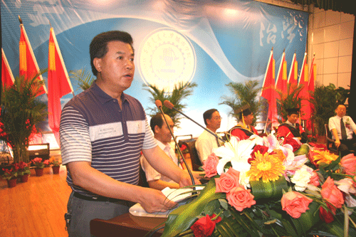 在学院党委书记赵金胜副教授的带领下,毕业生集体进行宣誓,大家各个声音洪亮,场面庄严而隆重。随后学院院长陈光德教授走向主席台,发表了精彩感言。讲话中他对学院优秀的学子寄予厚望,对他们提出了殷殷期望―― “既要怀抱梦想、又要脚踏实地”、 “既要担当责任、又要懂得感恩”,希望大家时刻心系母校,关心、支持母校的发展,用自己的行动和业绩为母校增光添彩,母校期盼着每位学子事业有成、一帆风顺!