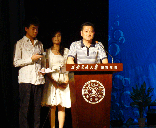 在欢送会现场,与观众互动的“听伴奏猜歌曲”节目将会场气氛带入了高潮。随后由冀祥老师宣布了管理系06级考上研究生的22位同学名单,并与程�老师、赵凯老师及曹嘉伟老师一起分别为这些同学颁发了荣誉证书和奖杯,以表达对他们的鼓励、美好祝福和殷切期望。最后,由两位考上研究生的同学代表就考研经验为现场观众做了精彩而详细的介绍。同学们不仅从此次欢送会中感受到了学院的浓浓的温暖,也从两位学长的考研经验介绍中获益良多。