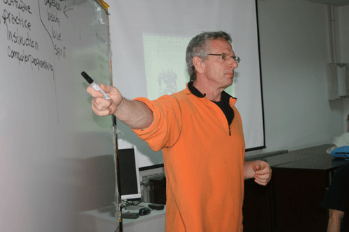 随后,在与艺术系教师的交流中,Scott Ross先生以国际动画市场为切入点,谈到了国际动画影视发展的现状及未来趋势。当谈到我院艺术设计系在动画专业课程设置上如何与国际市场人才需求接轨的问题时,他以国际视野为出发点,就艺术系动画专业如何发展与艺术系全体教师进行了更深一步的交流探讨。整个参观交流在友好、轻松、活泼的气氛中圆满结束。