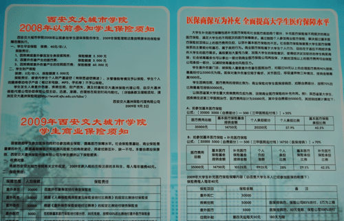 学生中心还专门为我院学生汇编制定了“西安市大学生参加城镇居民基本医疗保险宣传提纲 (摘要)” 、“威尼斯7798cc大学生基本医疗保险理赔须知” 、“医保商保互为补充,全面提高大学生医疗保障水平”等宣传展板,保障了我院大学生医保各项管理工作有序进行。