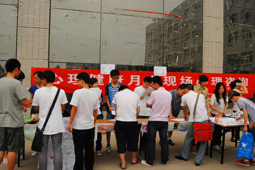 5月31日中午,学生服务中心组织心理志愿者、心理协会,在学生食堂西侧举行了现场心理咨询活动。