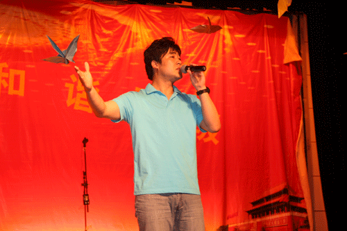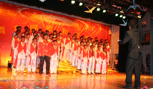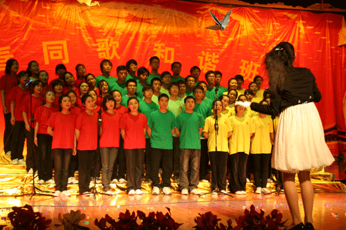 伴随着优美的舞蹈和激昂的朗诵,比赛由教改901―905班演唱的《爱因为在心中》拉开了序幕。随后,一首由电气801―804班带来的《好汉歌》将比赛推向了高潮,博得了在场观众的阵阵掌声。本次比赛参赛班级创意连连,其中经管811―815班带来的《念故乡》表达了异乡的同学对故乡的怀念之情,08、09级外语系带来的“我们是世界的孩子”――《哆啦A梦》、《we are the world》一展外语风采,经管906―910班演唱的《二十年后再相会》《同桌的你》表达了同学之间最真挚感情等等都获得了观众和评委的一致好评。最后,由机械801―803班,能动801―803班演唱的《中国有我》及《爱》结束了整场比赛。利用评为统计分数的时间,担任评委的李一村老师及范宇老师还倾情为大家助兴演唱了拿手好歌,博得在场疯狂的欢呼。