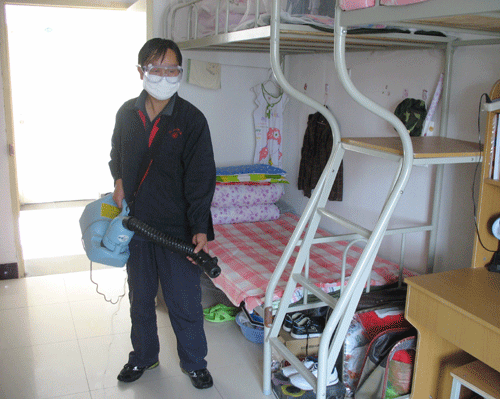 为了开展好活动,学生公寓采取宣传、告示等多种形式,就公共场所卫生、灭鼠清蚊、病媒生物防治消毒等活动内容,重点进行了宣传动员,并号召同学们认真搞好宿舍卫生,做到室内不堆放垃圾,剩余瓜果废物及时清理,保护好环境卫生,并进行督促检查。5月10日至12日期间,他们还抽调公寓工作人员,集中对宿舍楼公共卫生间、走廊、楼梯、门厅、垃圾桶等公共部位进行了彻底卫生大清除,对1520间学生宿舍喷洒了过氧乙酸溶液进行消毒。