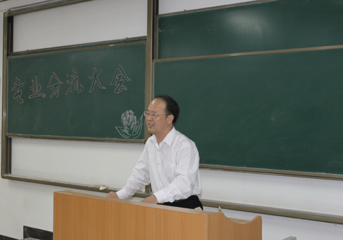 4月28日下午四时,外语系副主任赵永生副教授为英语专业08级全体同学作了关于高年级阶段专业方向分流的讲座。