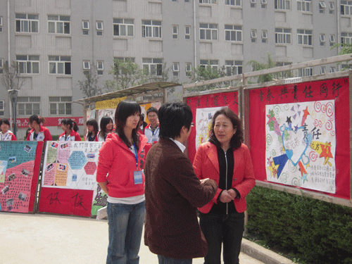 在院领导、学生中心和院团委的大力支持和指导下,4月16日,由管理系团总支主办的“青春与责任同行”最佳团日活动展在学生活动中心楼下成功举办。党委副书记、副院长韩超副研究员高度评价我们的工作,并指出团总支要充分发挥桥梁作用,认真贯彻院党委、团委工作精神,尤其要注重团员的思想教育工作,加强团员在校的政治学习。另外,数学教研室主任寿纪麟教授、院宣传办公室马妤老师、院团委牛彦龙老师及闫晓菊老师等也莅临参观指导。
