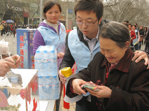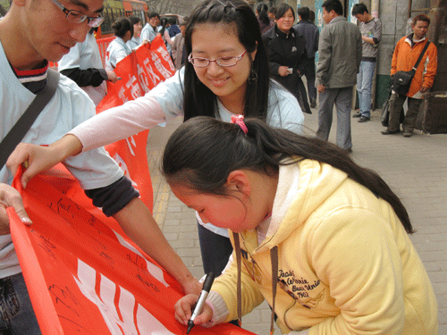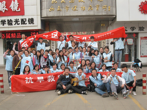 为了向灾区群众伸出热情援手,帮助受灾群众克服困难,渡过难关,奉献我们的一份爱心,2010年3月30日,我院经管824班学生一行50多人在西安市大差市繁华路段展开募捐义演活动。