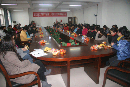 为了喜迎第100个妇女节,3月6日下午,学院在学生活动中心东402会议室热烈举行庆祝三八国际妇女节一百周年茶话会。党委书记、院长陈光德教授,党委副书记,副院长韩超副研究员,副院长李能贵教授,总会计师李加玉老师出席大会,党政服务中心主任、院工会委员、各工会小组长、女教职工代表参加会议,大会由工会女工委员史冬梅老师主持。