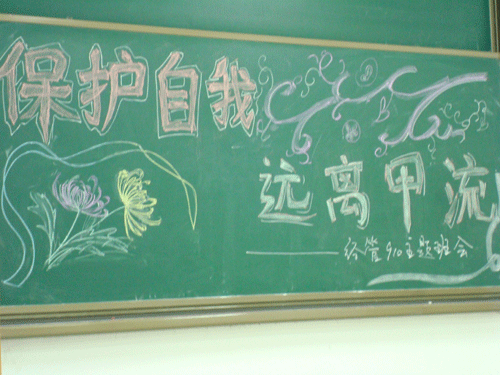 12月9日,经管910班召开了以“保护自我,远离甲流”为主题的主题班会,旨在让同学们进一步了解甲型H1N1流感是可防、可控和可治的,消除同学们的普遍恐慌心理,帮助大家摆正心态,正确积极面对和抗击甲流。