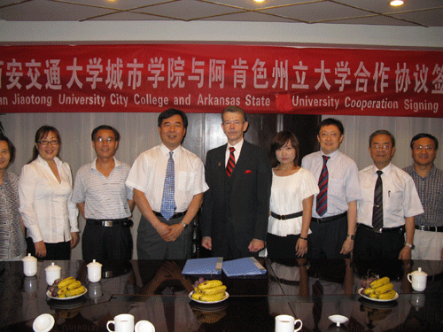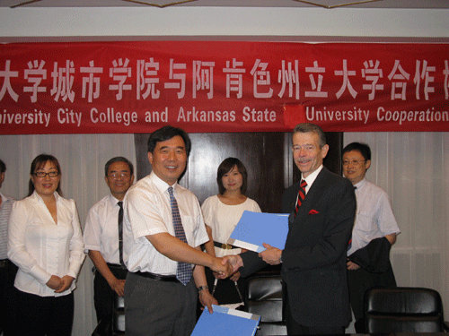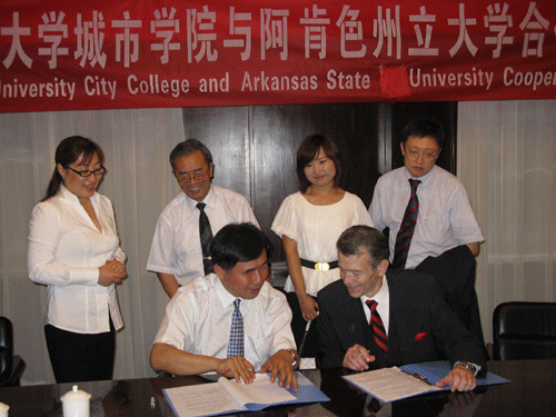 2009年7月5日,美国阿肯色州立大学校长Howard・Gordon Daniel博士访问我院。我院院长陈光德教授、副院长李能贵教授在交大南洋大酒店第4会议室、交大科学馆201会议室与Howard・Gordon Daniel校长进行了亲切友好的会谈。宾主双方就“4+0” 、“3+1”模式合作办学事宜充分交换了意见并达成了共识,签署了合作办学协议。