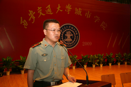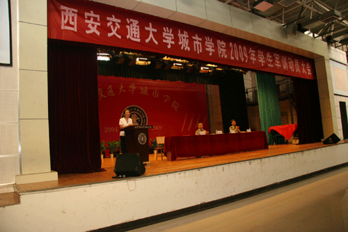 7月6日上午,2008级学生军训动员大会在学生活动中心隆重召开。学院党委副书记、副院长韩超老师、学生服务中心主任马兆平老师、西安陆军学院第二学员大队政委安超中校出席了大会。大会由学生服务中心副主任张学堂老师主持。