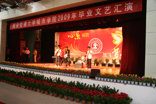 学院2009届毕业文艺汇演于7月3日上午在学生活动中心成功举行。学院党委副书记、副院长韩超老师、管理系主任王海民老师、学生服务中心副主任张学堂老师、团委闫晓菊老师、王蜜蜜老师等出席活动。此次活动由院团委和学生会策划并组织,演出节目大多由我院即将毕业的2005级学生所表演,同时也有低年级的同学们为祝福学长、送别学长而精心准备的节目。