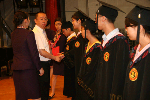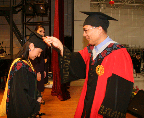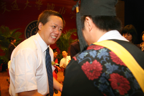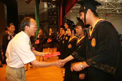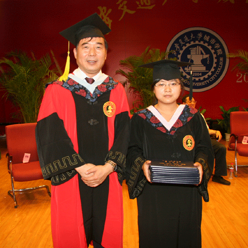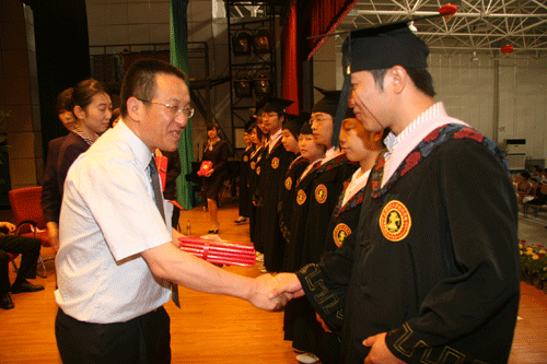 接着由学院副院长李能贵教授宣读优秀毕业生表彰决定和自主创业、参加西部计划、预征入伍毕业生表彰决定。并由西安交通大学党委副书记王小力教授,交大博通公司总裁、学院董事长雷厉先生为省级优秀毕业生和优秀学生干部颁奖;由学院副院长张敬朝高级工程师为院级优秀学生干部颁奖;由西安交大社会教育管理处处长、学院董事冯晓光先生为院级优秀毕业生颁奖;由西安经发集团副总经理、学院董事韩东升先生为院级优秀毕业生颁奖。最后,西安交通大学党委常委、副书记王小力教授和我院院长、党委书记陈光德教授庄严地为2009届毕业生颁发学历和学位证书,将毕业典礼推至高潮。