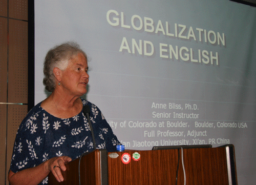 6月25日下午,应我院外语系邀请,美国科罗拉多大学教授、著名英语教学专家、富布莱特学者Anne Bliss在教学楼F100报告厅为我院师生做了一场题为“英语学习与全球化”的专题讲座。