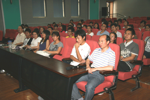 在讲座中,Anne Bliss教授以她自己丰富的教学经验和亲身经历向在座的老师和同学们讲述了全球经济一体化的影响下英语学习的重要性,她同时还讲到了学习英语的基本方法。整场讲座中,Anne Bliss教授语言诙谐,会场气氛高涨,使得同学们领略到了学习英语的乐趣。
