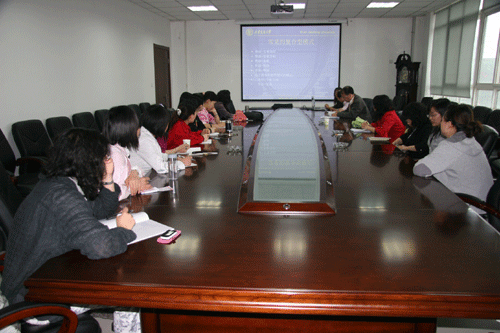 在主题报告中,陈向京主任首先就全国英语专业通常所采用的五种人才培养模式向大家做了系统、详尽的讲解。随后,她以西安交通大学外国语学院英语专业人才培养模式为例,向大家展示了西安交通大学英语系实现专业特色所采取的具体措施。在主题发言中,陈向京主任强调实现专业特色必须以强化专业本色为基础,在培养方案中要加大学生语言产出性技能的培养力度,确保“听、说、写”能力的培养不断线。同时,通过英语辩论赛、演讲比赛、模拟联合国和建立课程论坛等活动和举措,调动学生课外自主学习的积极性,为学生提供语言实践平台,提高学生的语言综合运用能力。最后,她还就如何调动学生课外学习积极性、上好第一堂课的重要性和学生课堂管理策略等话题与外语系教师进行了座谈。她丰富的教学管理经验和独到的见解帮助青年教师解除了教学中的困惑,得到大家一致好评。