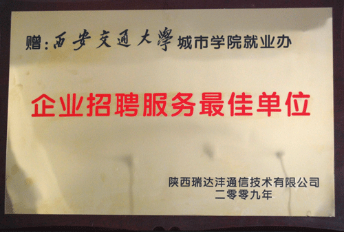 4月21日上午,陕西瑞达沣通信技术有限公司两位代表向我院就业办赠送了“招聘服务最佳单位”牌匾。陕西瑞达沣通信技术有限公司是一家以从事通信系设备销售、技术服务、设备调测为主的公司,具有华为全系列产品的调测及工程安装能力和通信网络的代理维护能力。在过年的一年里该公司前后已接收我院近十名毕业生去单位就业,并一直与我院就业办在就业的相关工作上长期保持着友好合作的关系。此次赠送牌匾的行动不仅是对我院就业办在招聘组织方面的有力肯定,更是对我院就业工作的很大鼓励。
