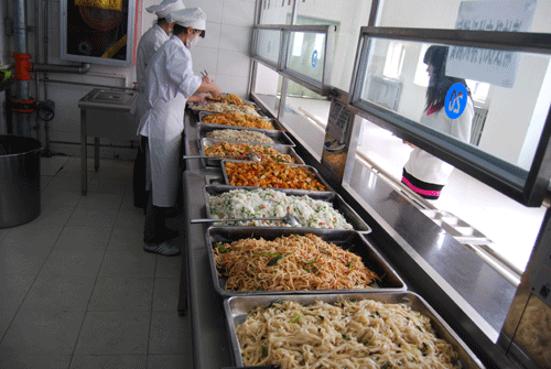 目前,教工餐厅已延长售饭时间,避免了售饭高峰期拥挤给广大师生带来不便的情况;食堂一楼增设教师专售窗口和教职工就餐区域,对就餐师生进行了分流,同时在就餐品种上也增加多种小吃主食等;食堂二楼一方面增设教师专售窗口和教职工就餐区域,另一方面定期更新自选菜品种,并设单炒菜窗口;清真餐厅增加品种,并严抓菜品质量,及时调整菜品颜色及口味,同时强化卫生质量,使全院师生吃得放心,舒心。