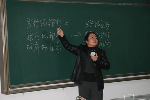 本次活动由应用经济系主任杨健全教授主持,应用经济系全体教职员工参加,分两阶段进行。首先,在教学楼C300教室观摩了专任教师西安交通大学陶玲琴副教授为我院金融06级主讲的《中央银行业务》课程教学。其次,教学观摩会后,在行政楼508会议室进行了座谈交流与教学方法改革研讨。大家围绕我院“教育教学质量年”活动的相关要求,结合我院高素质应用型人才的培养目标,就教学观摩体会、课程内容设计、师生如何互动、教学方法改革、多媒体教学等问题进行了广泛的交流与研讨。