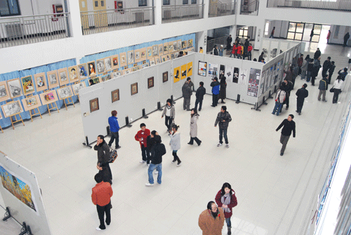 2009年1月4号上午,我院艺术系首届师生作品展开幕式在教学楼F100多功能厅隆重举行。学院艺术系名誉主任、交大人文学院艺术系教授、原书画协会副主席钟明善先生,陕西师范大学美术学院副院长冯民生先生,西安美术学院国画教研室主任李鸿照先生,黄河画院院长高庆衍先生,西安美术学院教育系主任李秦龙先生等应邀出席开幕式;学院党委书记、常务副院长陈光德教授,副院长李能贵教授参加开幕式,艺术系副主任解安宁老师担任主持。
