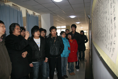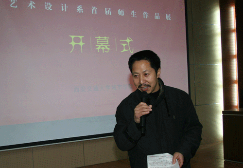 开幕式上陈光德副院长首先对各位专家的到来表示热烈欢迎,并对艺术系的概况向嘉宾作了简要介绍,指出虽然艺术系是学院较为年轻的系,但它正在发展壮大,希望各位专家及学院师生共同努力,将艺术系办出特色,办出风格,办出品牌。随后,艺术系名誉主任钟明善教授作了精彩讲话。钟教授希望学院师生能够秉承交大优良的艺术传统,在历史的长河中寻找自己的特色,钟教授重点强调,同学们应该扎扎实实打好基础,不好高骛远,在打好基础的前提下再运用现代高科技手段进一步突显优越性,希望同学们能够珍惜上学时光,努力将自己培养成一专多能的人才,增强自己在社会上的竞争力。陕西师范大学美术学院副院长冯民生先生认为我院有着正确的办学理念,继续坚持立足基础和技能的培养,学院艺术系的发展定会取得卓越的成绩。最后所有嘉宾同师生合影留念,并共同参观了师生艺术作品展览,众多学生作品还当场得到了专家点评。