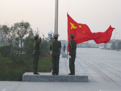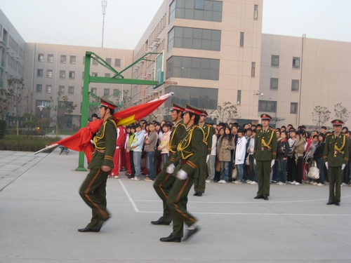 深秋的早晨是寒冷的,但这丝毫无法降低同学们的热情,大家统一着装早早的来到操场整齐列队,等待着升旗仪式的开始。7点30分,升旗仪式正式开始,伴随着雄壮的国歌声,国旗班的干部将鲜艳的五星红旗徐徐升起。随后经管813班的王超同学代表08级新生做国旗下的演讲,他的发言内容围绕着爱国主题,提醒着我们做为祖国未来的栋梁,肩负着何等的重担,我们只有成为了一名有着爱国主义思想的合格大学生,才能够在今后的大学生活中更好的使自己得到提高,也才能够在步入社会后成为一名有益于社会的人。