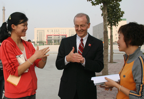 最后,美国代表团在教学楼F100报告厅看望了中美项目班全体同学并与大家进行亲切交谈。我院国贸502班学生叶一琳就今年赴美夏令营的亲身经历做了精彩报告,博得在场贵宾及同学的热烈掌声。林肯大学校长帕尔曼博士、副校长葛朵博士也对我院学生提出的问题进行了详尽解答。此次美国代表团一行对我院及学生给予高度评价,无论是学院的热情款待还是学生的优良素质无不感染着他们,双方纷纷坚信两校的合作定会取得更大成功。