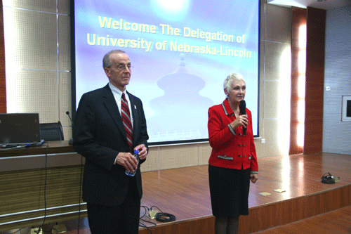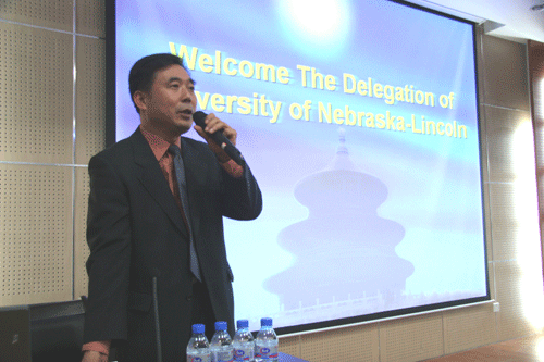 10月14日下午,美国内布拉斯加-林肯大学校长帕尔曼博士、副校长葛朵博士等四人来我院进行访问。学院党委书记、常务副院长陈光德教授,党委副书记、副院长韩超副研究员,副院长李能贵教授,副院长张敬朝高级工程师及各中心主任热情接待了贵宾。